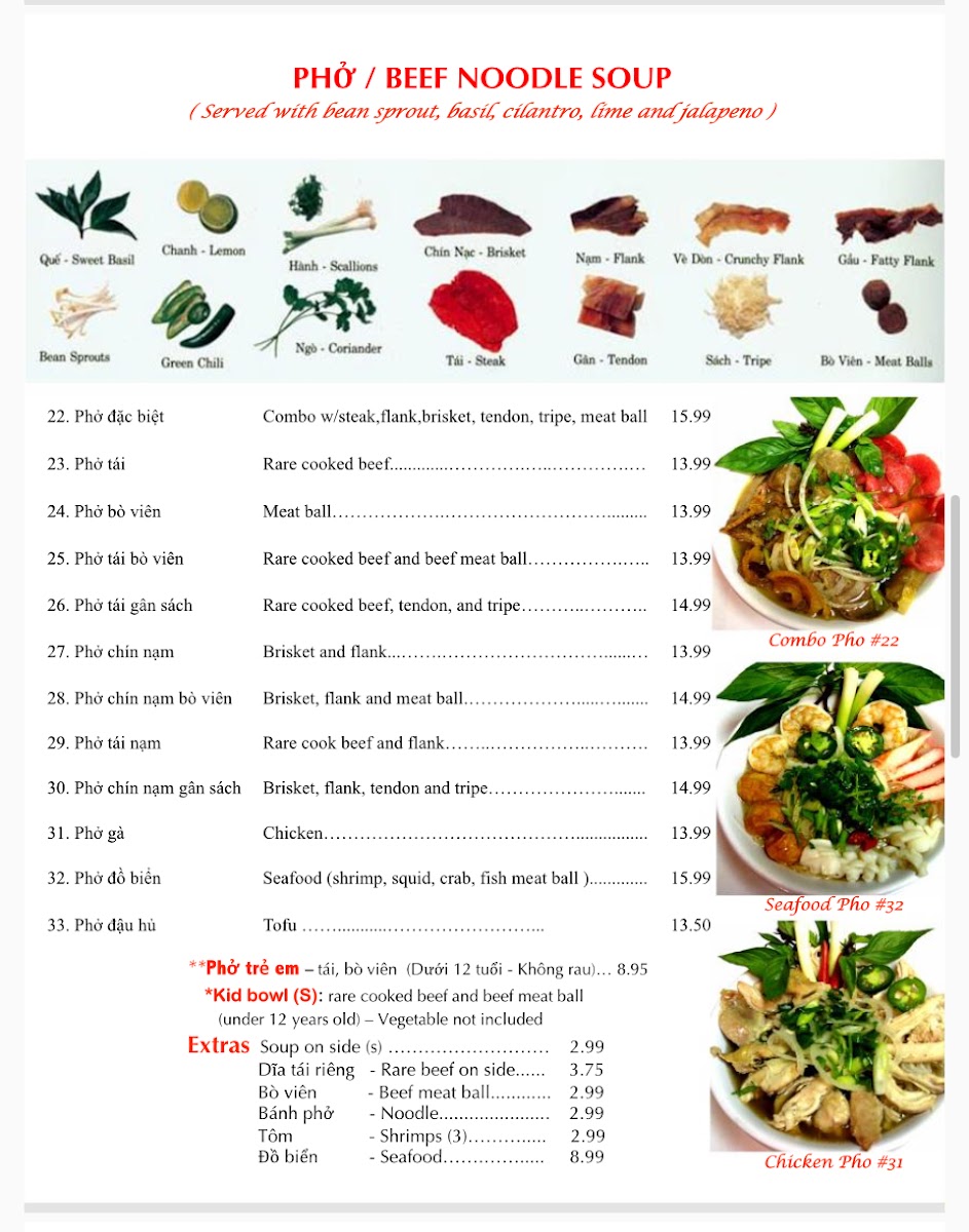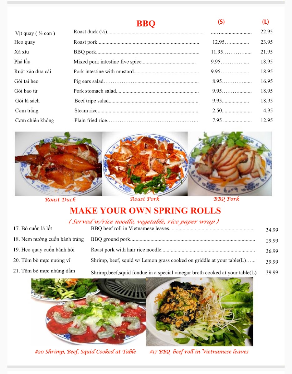 Van Loi II offers a thoughtfully curated menu reflecting the rich flavors of Vietnamese and Southeast Asian cuisine. The selection balances comforting, hearty dishes with lighter, fresh options, perfect for a casual lunch or a relaxed dinner. You can expect a well-rounded experience from warming soups like their celebrated pho and congee to vibrant appetizers such as spring rolls and papaya salad. The menu also features satisfying barbecue specialties, including roast duck and crispy quail, which complement the inviting, relaxed atmosphere of the restaurant.