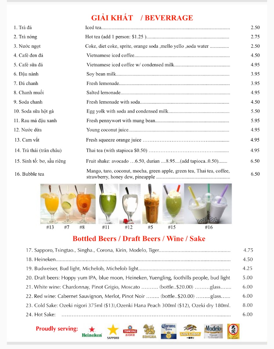 Drinks such as avocado and mango bubble tea provide a refreshing, sweet contrast that enhances the overall experience, especially on warmer days. The menu’s variety offers options that can suit different tastes and moods while staying true to authentic Vietnamese flavors.